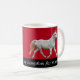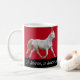 Um cavalo branco prancing em torno desta caneca festiva. Personalize mudando as citações de Shakespeare e/ou a cor do fundo.