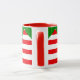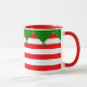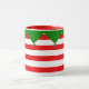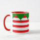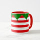 Esta caneca do duende com as listras e parte superior vermelhas e brancas do estilo do duende é perfeita para suas bebidas mornas do feriado.