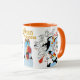 Esboce a caneca que caracteriza o caráter animado, papagaio-do-mar, do filme clássico da princesa da cisne. Seus borda e punho são alaranjados que faz o contraste coloristic à superfície branca da caneca com formas pretas dos caráteres tirados colocados nela e faz a referência às partes do caráter coloristic. Inclui o logotipo oficial da princesa da cisne. Este design está igualmente disponível em dois tamanhos das placas e faz a parte de uma coleção de jantar mais grande. Procure suas outras partes na loja da princesa Zazzle da cisne!
