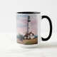 De uma pintura acrílica original por Brenda Thour da luz do ponto do vento situada em Racine, em Wisconsin com um por do sol cor-de-rosa e azul. Copyright por Brenda Thour 2004.