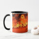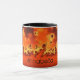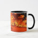 Um sol alaranjado ejeta espirais impetuosas nestes trabalhos de arte do fractal. Há um espaço para um nome no centro da caneca.