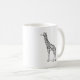 Uma caneca com uma imagem de um girafa e no verso diz a "posse sua elevação principal".