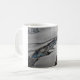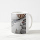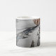 Um coelho de coelho pequeno bonito verifica para fora um boneco de neve alegre em um dia de inverno nesta caneca perfeita para ver se há o café ou o cacau quente.