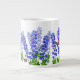 O design original das belas artes do Delphinium ou as flores e as borboletas de Larkspur pelo artista Carolyn McFann do estúdio de ronrom de dois gatos imprimiu em uma caneca enorme da qualidade para fãs florais da arte.