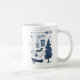 A caneca da vida do lago Minnesota caracteriza uma pá, um pólo de pesca, uma jaqueta de vida, um mergulhão-do-norte, uma fogueira, uns cones do pinho, um terno de natação e umas árvores.