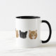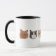 Uma caneca que caracteriza retratos de gatos do lugar de seis gatos malhados.