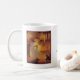 A caneca do Natal com imagem do vintage de Norman Rockwell intitulou "é ele que vem?".