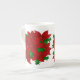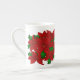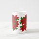 Caneca delicada de China de osso da poinsétia para servir o chá ou o café ou alguma bebida quente que acompanhassem um deserto doce da guloseima após um comensal de Natal résistente. Você tem uma escolha de adicionar uma cor do fundo contudo o contraste dos saques brancos lustrosos do revestimento esta apresentação apenas fina. Um grupo de 2, de 4, de 6 ou de mais faria um presente de época natalícia maravilhoso.