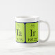 Alastair soletrou para fora como o Al como Ta Ir (irídio de alumínio do tântalo do arsênico) em uma caneca para o cientista em você.