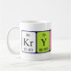 Krystal soletrou para fora como o Al do Kr Y S T (alumínio do trítio do enxofre do ítrio do crípton) em uma caneca para o cientista em você.