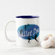 Um design que comemore os pais que apoiam os jovens da dança assim como os pais que dançam o balé. As palavras do "pai balé" são cercadas elegante pelas silhuetas dos dançarinos de balé masculinos e fêmeas na frente de um fundo oval azul. Escolha de muitos estilos e cores! Este produto é inteiramente customizável com opção adicionar o texto (tal como nomes ou frases) e/ou a sua própria foto para fazer um presente verdadeiramente original. www.Gifts4Dancers.com