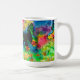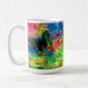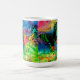 Minha cor de água original imprimiu em uma caneca do bebendo que caracteriza o grupo do arbusto de Omphalea em um fundo brilhante do por do sol visitado pelas traças do por do sol (Chrysiridia Rhipheus), que são nativas a Madagascar, África.