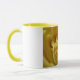 Um rosa amarelo a iluminar acima de sua ruptura do pequeno almoço ou de café.