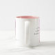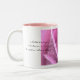 caneca de café dois-tonificada com rosa no interior, e um gráfico cor-de-rosa cor-de-rosa na parte externa com uma parafrase dos Philippians 4: 8.