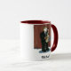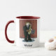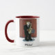 Uma caneca para um jogador de saxofone personalizado com um nome abaixo da imagem. A imagem e o nome estão em ambos os lados. Você pode mudar o tamanho, o estilo ou a cor da caneca.