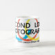 caneca padrão do café & do chá que promove o olhar fotográfico da associação em segundo