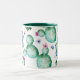 Aprecie sorver seu café ou chá da manhã desta caneca cerâmica fantástica, de alta qualidade. Os succulents lunáticos da aguarela dançam toda a maneira em torno da caneca, olhando bonita de cada ângulo. A ilustração inclui o echeveria e o cacto nas máscaras da esmeralda, da safira, e da cerceta, acentuada com flores cor-de-rosa brilhantes! O interior verde da caneca ajusta-se fora dos succulents belamente.