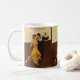 Imagem do anúncio do vintage de um casal que dança o tango com poemas líricos da canção no fundo