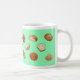 Caneca com design alegre do desenho do pão. Luz - fundo verde. Esta caneca de café com os 17 desenhos originais diferentes do pão e da pastelaria iluminará suas manhã e tarde. Faz um grande presente para o senhor mesmo ou outro para toda a ocasião.