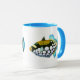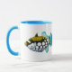 Para depositários do aquarim e amantes dos peixes, este design da caneca de café é de um Triggerfish do palhaço dos recifes de corais de Havaí. Trabalhos de arte por Carolyn McFann do estúdio de ronrom de dois gatos.
