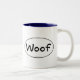 Caneca com Woof dentro de um euro- círculo. Grande presente para algum amante do cão.