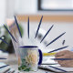 Meu trabalho de arte digital original com minha fotografia original de duas rosas bonito amarelas-cor-de-rosa creme está neste bonito copo de caneca floral. A imagem foi processada com efeito de fantasia de aquarela para uma aparência ilustrada e caprichosa. O dentro da xícara e da pega são um tom azul para complementar o trabalho de arte. Estas são canecas de 11 onças, do tamanho perfeito para o café ou chá da sua casa - ou até chocolate quente! Ele faria um presente de excelente e você poderia colocar pacotes de café, bolsas de chá ou dentro de chocolate quente. Uma outra ideia de presente é colocar uma pequena planta nela para torná-la mais especial para o seu amado.