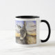 A donkey greets the morning on this two tone coffee mug.