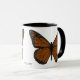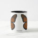 Características deste design uma borboleta de monarca alaranjada e preta bonita com formas geométricas variadas que decora os padrões nas asas e no corpo da borboleta.