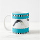 O trio dos pilates figura o círculo uma caneca em preto e branco com uma beira verificada. A cor do fundo pode ser personalizada.