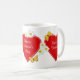 As margaridas frescas brancas brilhantes entrelaçadas com corações e as borboletas vermelhos aumentam esta caneca bonito dos namorados. Personalize com seu próprio texto no modelo fornecido. Um presente bonito para alguém especial. Você pode igualmente apreciar combinar os presentes e os cartões disponíveis em minha loja. A fotografia e o design originais pelo Anura projetam o estúdio.