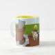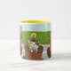 Três gatinhos estão fazendo o prejuízo na imagem da aguarela nesta caneca. Cada gato pequeno escolheu um terra - pote de flor do cotta a jogar dentro e destruiu os índices no processo. O gatinho cinzento no primeiro pote dispersou a sujeira e o vermelho floresce toda em torno dele e tem-se tornado agora confundido por algo mais na distância. No centro, os sorrisos de um gatinho da chita na destruição e a flor amarela empoleiraram-se sobre sua cabeça. Um gatinho listrado alaranjado é primeiro principal e ainda escavar no último pote com sua cauda pequena que cola acima no ar. Todo o desordem felino ocorreu em um pátio do flagstone ao lado de um gramado verde em um dia de céus azuis. De minha imagem digital criada do original.