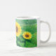 De uma aguarela original por Donna Kerr, estes 3 girassóis alegres parecem dançar enquanto balançam no vento altamente sobre uma montanha.