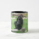 um gorila que senta-se em uma rocha que come na fatia da maçã