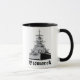 Caneca com desenho de dois marinheiros alemães do famoso couraçado alemão Bismarck da segunda guerra mundial com o nome do navio escrito com letras fraktur.