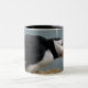 Caracteriza um par de papagaio-do-mar bonitos em uma exposição do corte
