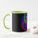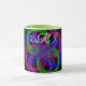 Modern 3D circular inspired double loop mesh geometric custom coffee mug. Unique features include a colorful design, custom text and additional mug color options.