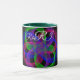 Modern 3D circular inspired double loop mesh geometric custom coffee mug. Unique features include a colorful design, custom text and additional mug color options.