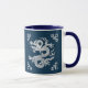 Uma caneca de café num dragão chinês em branco, seu corpo sinuoso coberto em escalas intrincadas. Com sussurros flamejantes, garras afiadas e movimento dinâmico, ele exude poder, misticismo e simbolismo tradicional oriental de força e sabedoria.