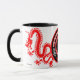 O dragão do norte Kung Fu EUA, logotipo oficial da escola, Sifu Charles Watson, Gilbert AZ, logotipo e dragão projeta na caneca cerâmica branca com interior preto e o punho