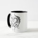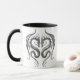 Dois dragões tribais enfrentam-se neste design simétrico agressivo. As serpentes voadas têm a aparência da moldação fora do ferro contínuo que cria um olhar 3D impressionante. A textura metálica e a cor de prata profunda dão a este design da caneca um olhar à moda.