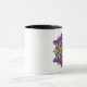 Caneca Dragonfly e flores roxas e rosa Mandala