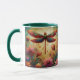 Caneca Dragonfly Floral Abstrato-Art Teal Rosa