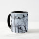 A neve sonhosa cai em todos os corvos do lado de fora num dia frio de inverno. Coloque um cacau quente com esta caneca inspirada no inverno enquanto olhava para a neve caindo do lado de fora.