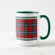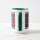 Caneca de café com tartã para Clan Drummond e suas sebes, incluindo Cargill e MacGruder. Padrão de xadrez escocesa vermelho-claro e verde-florestal de 1822, com sotaques azuis, brancos e amarelos.