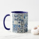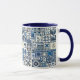Azul branco e marinho 11 oz. caneca combinada com uma imagem parecida com azulejos holandeses de Delft, de cor cerâmica, de vidro estanho.