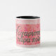 Branco e preto 11 oz. combo a caneca com o sentimento "efharisto para poli" (obrigado muito em grego) num fundo floral cor-de-rosa com uma fronteira chave grega rosa. Ver pote de doces correspondente, copo expresso, frasco, lança, vidro de tiro, bule e portas copos. Veja toda a coleção Toga Mug na COMIDA/BEV| Seção Pratos.
