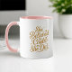 Celebre sua força, ambição e conquista com esta matiz minimalista de graduação, com a citação inspiradora. O elegante design frontal na escrita de ouro suave é elevado com sopro sutil ou sotaques de louros para um acabamento refinado. Ao contrário, personalize com seu nome e ano de graduação sob um emblema de boné de formando saboroso perfeito para uso diário ou exibição. Essa caneca branca de cerâmica, com pincel rosa esbranquiçado e interior, é um presente significativo para filhas, sobrinhas, melhores amigos ou formandos de instituições ou programas. Ideal para cerimônias de graduação, festas, ou como um lembrete matinal de tudo o que ela realizou.