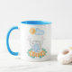 Elefante para bebês de cor aquosa, com borboletas cor-de-rosa azuis e flores laranja.