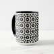 A sophisticated black arabesque geometric pattern featuring symmetrical ornamental details.