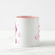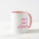Um elfo de ai bonito, de cor rosa, segurando uma xícara de café ou Cacau Quente desejando um Feliz Natal!